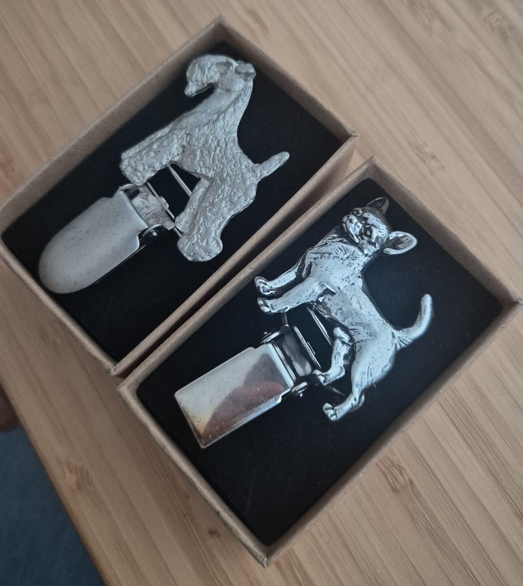 This Kerry Blue Terrier clip is more than just a brooch—it’s a piece of art designed for those who cherish their pets and enjoy attending dog shows. The unique design captures the terrier’s charming silhouette and is lightweight enough to wear comfortably throughout the day. With its specialized clip, it’s perfectly suited to hold your number, making it a practical and beautiful choice for dog show enthusiasts.