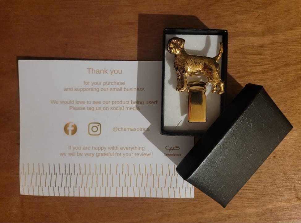At ChemaSotoca, we specialize in handcrafted dog-inspired jewelry and gifts. Our unique collection features an array of items including dog brooches, number holders, rosette number holders, tie clips, bracelets, necklaces, chokers, earrings, coin purses, gift sets, belt buckles, and more. We also offer designs inspired by cats, horses, and art deco styles, ensuring there is something special for every pet lover.